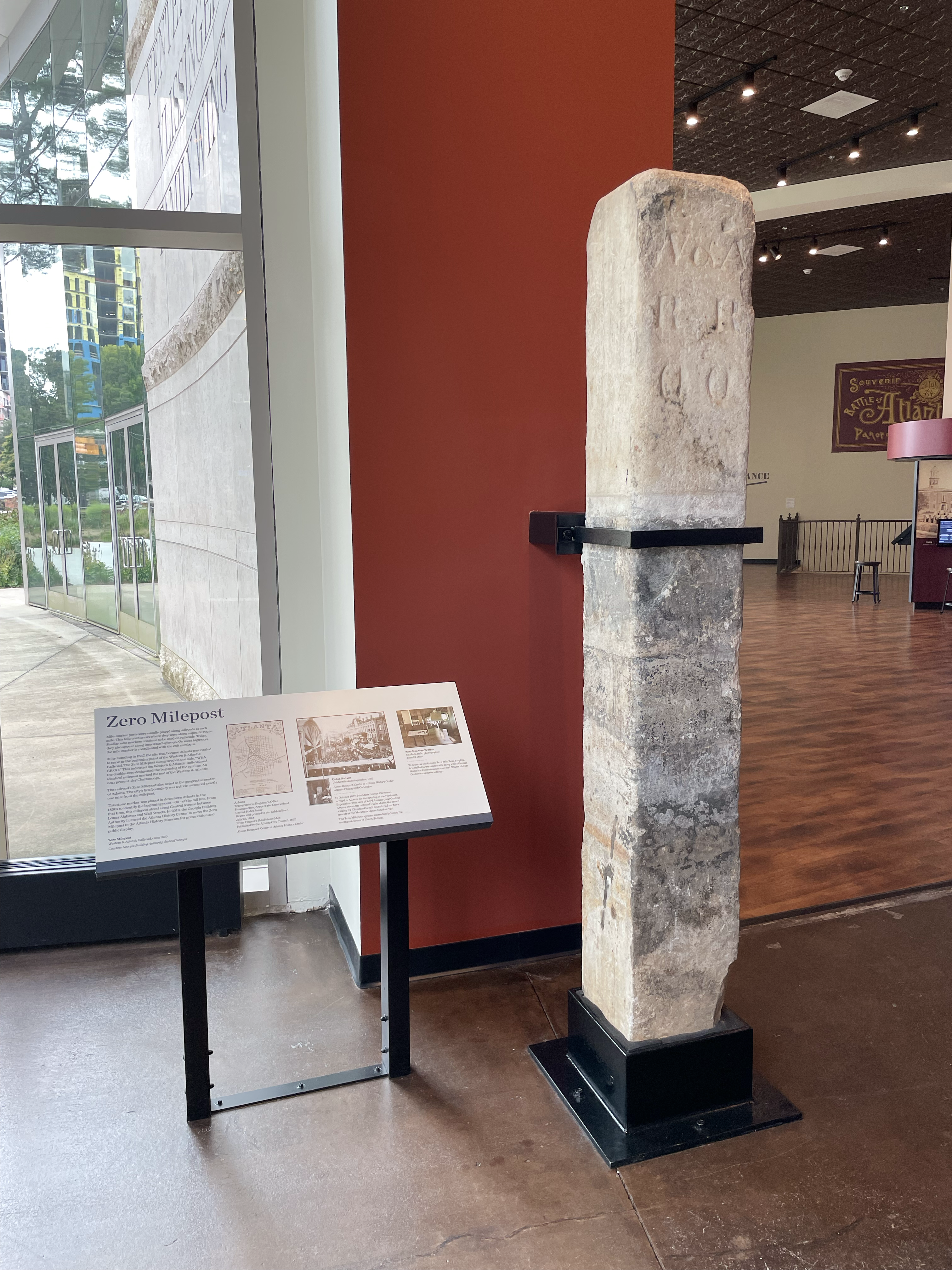 Atlanta's Zero Mile Post, relocated in 2019 to the Atlanta History Center.